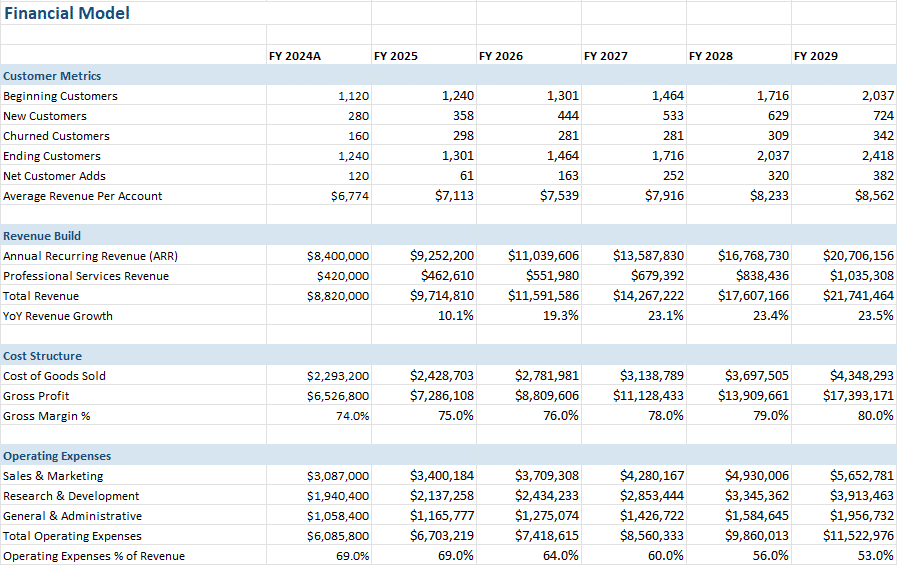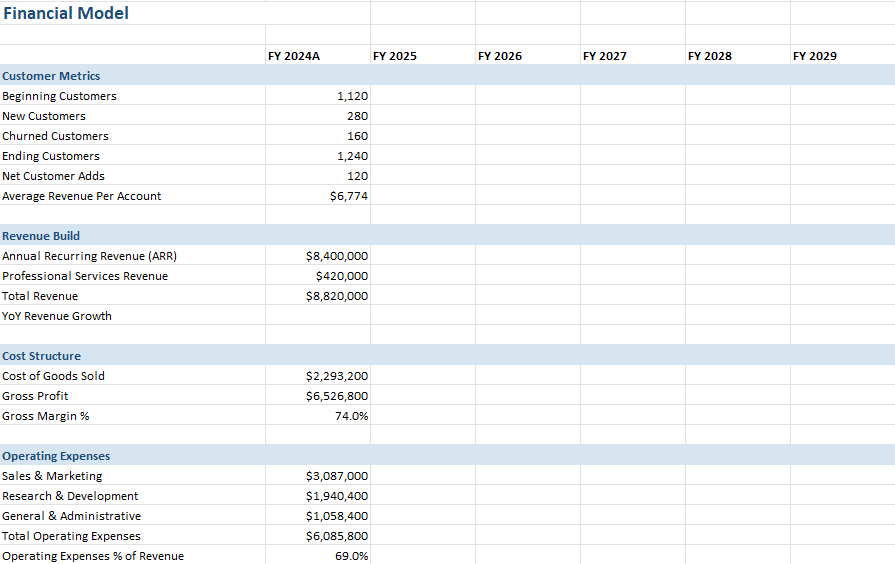 - Churned Customers: We confirm this formula calculates beginning customers × churn rate (annualized or monthly, as needed).