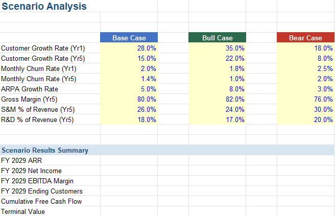 Step 3: Adding Scenario Analysis for Base, Bull, and Bear Cases