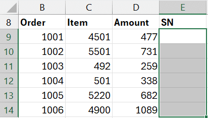 When the Item begins with a 4, we need to enter the serial number in the SN column. To make it easy for the data entry, we’d like to format the SN cells so it is obvious which ones require input, like this: