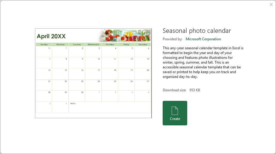 You can explore other Excel templates by searching “Calendar” in File > New. The formula approach will still work with modifications.