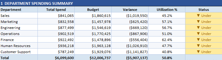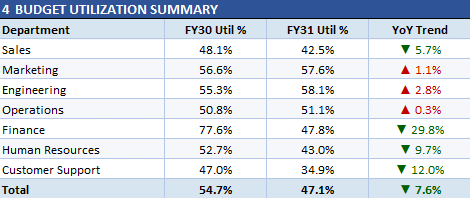 Step 5: Budget vs. Actual Analysis Across Tabs