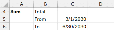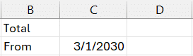 Next, let’s add a date condition: sum positive values where the date is greater than or equal to a “From Date.” We’ll store the From Date in a cell to make it easy to change: