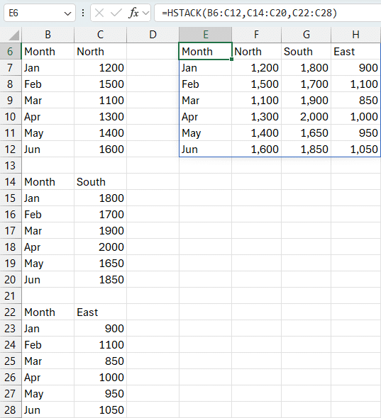 Ever find yourself combining data from multiple reports—maybe quarterly exports or regional summaries? If you’ve been manually copy-pasting data together, it’s time to meet your new best friends: VSTACK and HSTACK.
