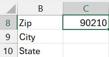 In a worksheet, let’s start with a cell where the user can enter the zip code, such as C8: