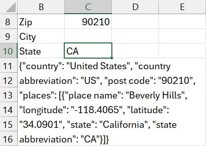api,WEBSERVICE("https://api.zippopotam.us/us/"&C8),